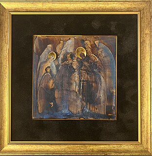 opisany na odwrocie: Małgorzata Dawidiuk Ikona-Cień tech wł.-mieszana 2019 r. pieczątka Ikos Małgorzata Dawidiuk