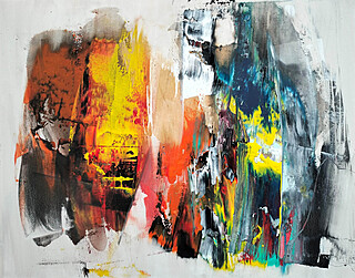 technika mieszana (masa strukturalna, farba lateksowa, szlagmetal)/płótno, 120,00 x 90,00 cm