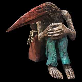 drewno, polichromia, 105x40x25 cm