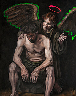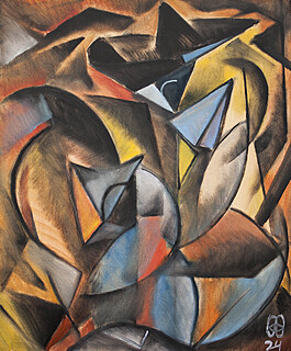 sygnowany, opisany, datowany na odwrociu: Marcin Wilk, 2024, Człowiek dźwigający głaz