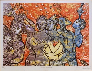 inkografia, 40 x 51 cm, sygnowana, datowana i opisana: '137/199, La Fiesta Psychedelica, Marco cecioni 1994', oprawiona