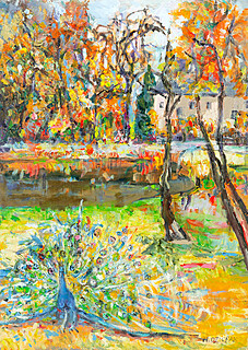 na odwrocie opisany, sygn. i dat.: MARIA DZIOPAK - JESIEŃ W DWORZE PODLESICE 2024 / PŁÓTNO, AKRYL