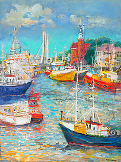 sygn. p.d.: M.DZIOPAK, opisany, sygn. i dat. na odwrocie: MARIA DZIOPAK - "KOŁOBRZEG PORT" - 2021 / PŁÓTNO, AKRYL