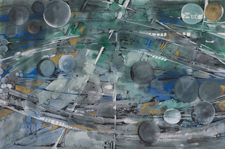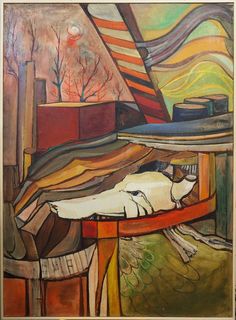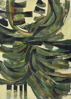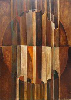 na odwr. l.g. nalepka z sygn.: MARIAN DĄBROWSKI | KOMPOZYCJA FORMY – BIO – URBANIST. 409 | 100 x 139 | OLEJ; p.g.: stempel – logo pleneru OSIEKI 75;