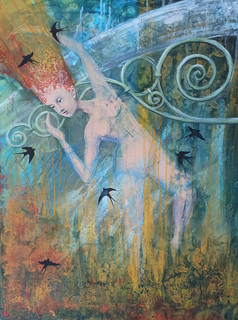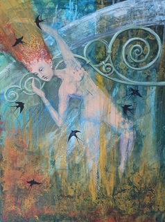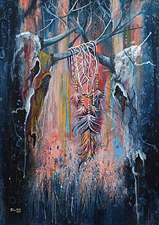 technika mieszana (akwarela, akryl), płótno, 100 x 70 cm,