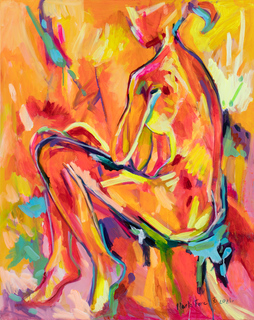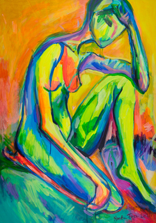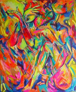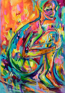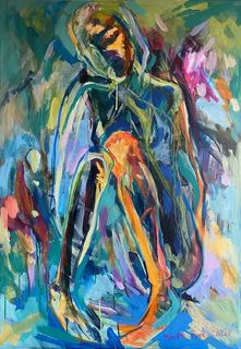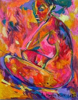 sygn. p.d.: Marta Forc 2021', opisany na odwrocie: "Kobiece przemyślenia" Akryl 70x100 cm Marta Forc 2021 r.