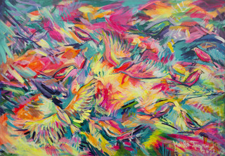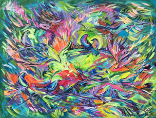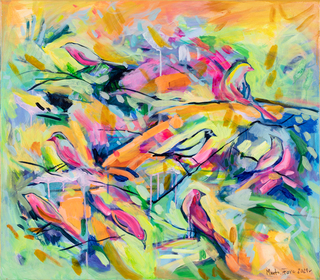 sygn. p.d.: Marta Forc 2021 r., opisany na odwrocie: "Wakacyjna nadzieja" Akryl, 70cm x 80cmm Marta Forc 2021 r.