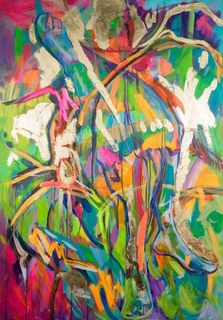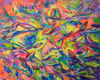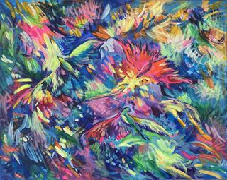 sygn. p.d.: Marta Forc XI 2021 r., opisany na odwrocie: "Wyciszenie" XI. 2021 Marta Forc 80x100 cm Akryl