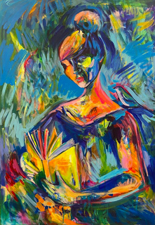 opisany na odwrocie: "Zamyślona, rozmarzona" Akryl 70x100 cm Marta Forc 2021 r.