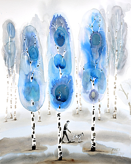 sygn. p.d. Marta Konieczny, opisany na odwrocie: "BRZOZY NIEBIESKIE" Marta Konieczny 2020 r.