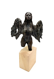 sygn. MW, ceramika, piaskowiec, brąz patynowany, 34x22x19