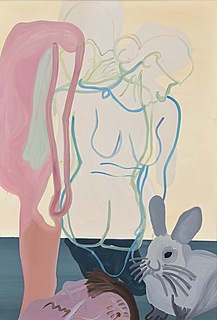 sygnowany, datowany i opisany na blejtramie: MARTYNA CZECH "IGRASZKA"70 x 90 cm, olej i akryl na płótnie, 2019