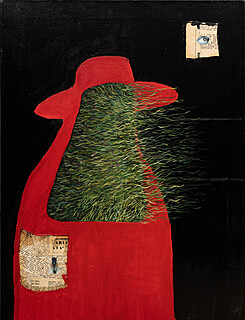 kolaż, papier, olej na płótnie, 80 x 70 cm