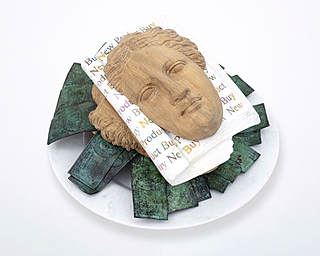 brąz patynowany i złocony 24K, marmur, z podstawą 20 x 12 x 17 cm,