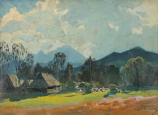 olej, płyta, 50 x 69 cm w świetle passe-partout,