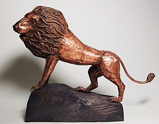 miedź, postument z żywicy, ok. 28,5 x 29 x 14 cm,