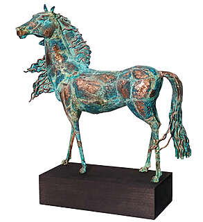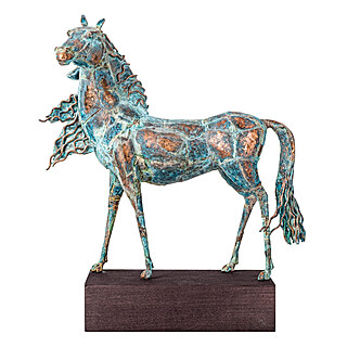 miedź, postument z drewna, ok. 35 x 14 x 21 cm,