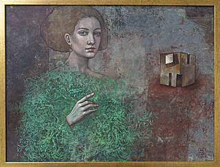 sygnowany l. d.: 'M | MIRA | 2024' oraz opisany na odwrocie: '"ZŁOTY TURBAN" | 60x80 cm, OLEJ, 2024-2025 | MIRA SKOCZEK-WOJNICKA | Mira'24'