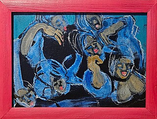 akryl, płyta malarska z czarna rama, 21 x 30 cm,