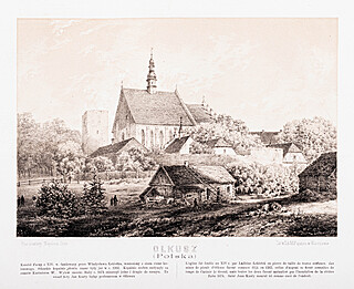 Widok fary w Olkuszu, wyd. Zakład Litograficzny Maksymiliana Fajansa, Warszawa, 1882-1883