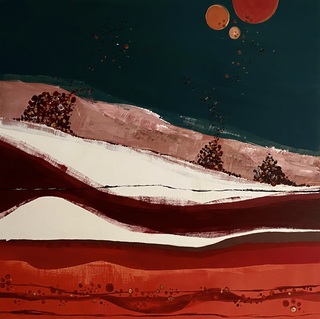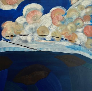 sygnowany, datowany, opisany na odwrociu: 'NAD MORZEM | 80 x 80 płótno 2021 | Natalia Kozarzewska'