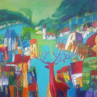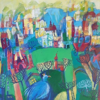 akryl, pastel na płótnie 70 x 100 cm