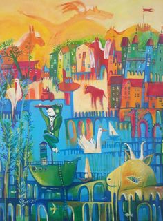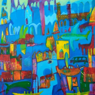 akryl,olej/płótno, 80 x 90 cm, sygnowany z przodu: 'n – w', sygnowany, datowany, opisany na odwrociu: 'Natalia Nasada-Wojtal, „Wyspa kolorowa”, 2021 '
