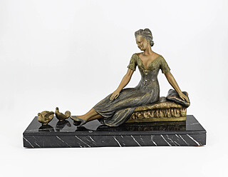 brąz (lub kompozycja metali), polichromia; marmur; wys. 33 cm; szer. 49 cm; głęb. 17 cm; nie sygn.