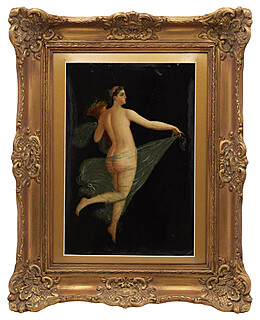 gwasz, iworyna; 8,5 x 6,2 cm (w świetle owalnej oprawy);