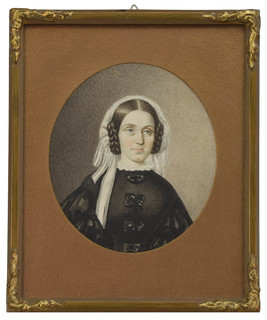 gwasz, kość; 8,5 x 6,2 cm (w świetle owalnej oprawy);