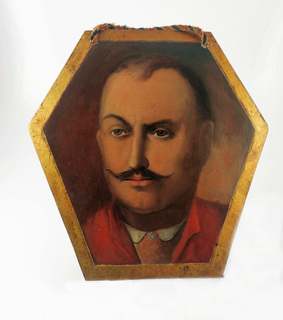 olej, blacha miedziana, obrzeże złocone i giloszowane; 35 x 34 cm;