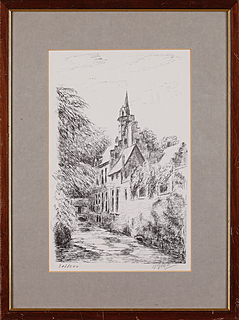 tusz, ołówek, papier; 34 x 23,5 cm (w świetle passe-partout).