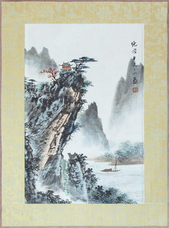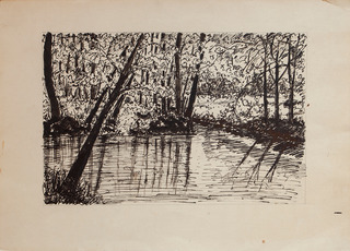 tusz lawowany papier; 30 x 20 cm (wymiar kompozycji), 38,5 x 28,5 cm (wymiar całości z bordiurą).