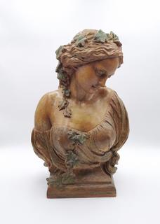 drewno gipsowane, polichromowane, złocone, inkrustowane szmaragdowym szkłem i lustrzanymi płytkami; wys. całkowita: 172,5 cm, 46 x 25 cm;