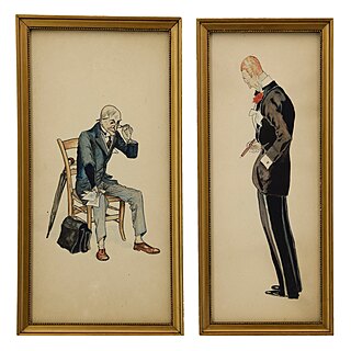 ołówek, tusz, akwarela, papier; 27,5 x 10,3 cm;