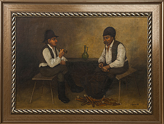 olej, karton naklejony na tekturę; wymiary: 310 mm - 410 mm.