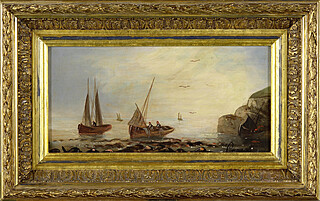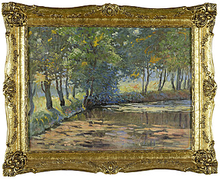 Olej, szkło eglomizowane 30 x 24 cm w świetle oprawy; oprawiony w złotą, ozdobną ramę o wym. 41 x 34 cm; na odwrociu wmontowana stara, dębowa deska.