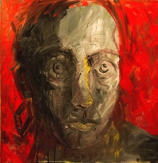 sygnowany i opisany na odwrocie: ‘Nikita Krzyżanowska, Postać III 2018 technika mieszana 100 x 120’