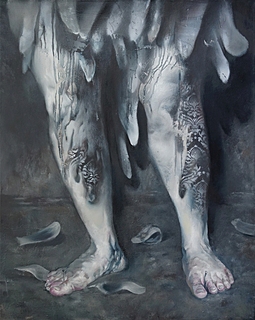 sygn., dat. i opisany na odwrocie: Nickita Tsoy / "Look down" / 100 x 100 / oil, canvas / [sygn. artysty].