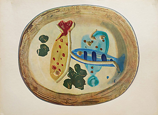przedstawia reprodukcję ceramicznego talerza "Fish and Olives" (Ryba i oliwki) autorstwa Pabla Picassa;