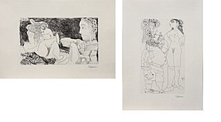 Litografia z serii „347 rycin”, papier welinowy Arches, wymiary: 25 x 29 cm w świetle passe-partout, 40 x 44 cm w ramie, edycja limitowana, nienumerowana. Sygn. na kamieniu w prawym dolny rogu „Picasso”, data powstania ryciny...