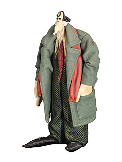 laleczka, technika własna, tkaniny, skóra, tworzywo; wysokość: ok. 29 cm.