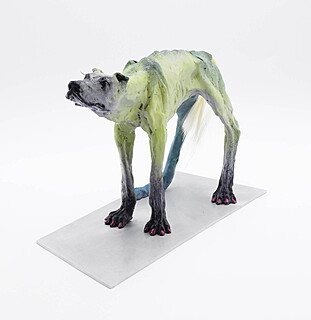 metal, żywica poliestrowa, aluminium, akryl, włosy; 60 x 115 x 65 cm.