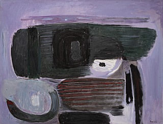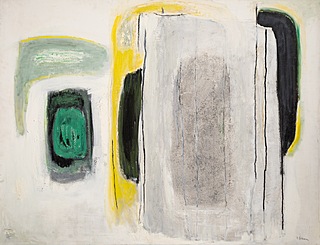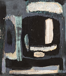 Na blejtramie: sygnatura artysty z tytułem „Kompozycja I”...