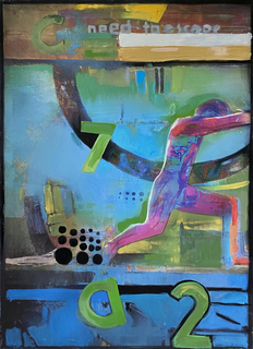 technika mieszana, olej, wydruk cyfrowy, płótno, 140 x 80 cm