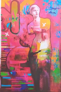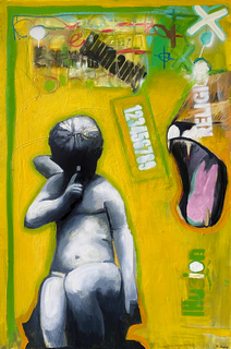 technika mieszana, olej, wydruk cyfrowy, płótno