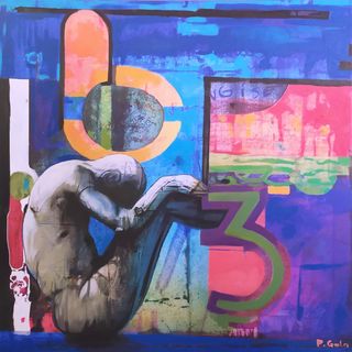 sygnowany, datowany, opisany na odwrociu: 'P. Gola 2021 | W labiryncie | zdarzeń '