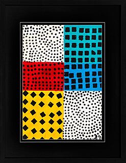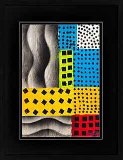 Technika własna, sitodruk, płótno, 20 x 20 cm, oprawiony