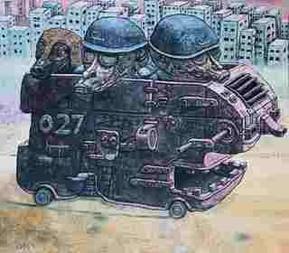 olej, szlagmetal, akryl, płótno, 100 x 130 cm