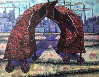 olej/płótno, 60 x 80 cm, sygnowany i datowany na odwrociu: 'Nogaj | '20'